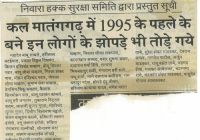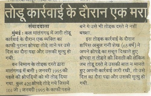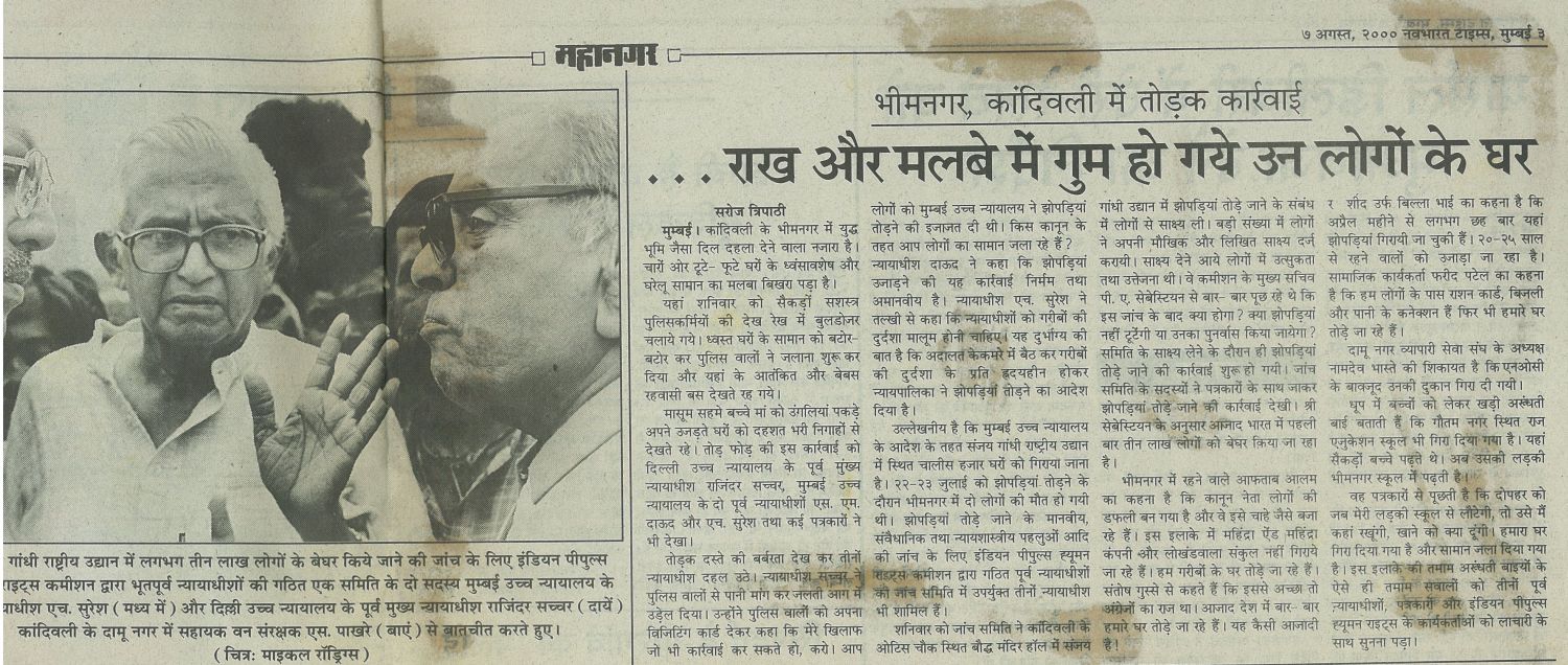 8th August: (Navbharat Times) Demolition of Bhim Nagar, a colony at National Park