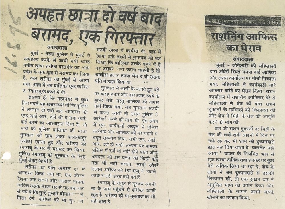 Once the communal fires subsided, Nivara Hakk discovered the world of extortion, violence and greed in the national park slums. In the Kurar and Pimpripada areas of Malad, slum-dwellers of Matanggarh, Ambedkar Nagar and Azad Nagar became victims of land mafia gangs led by Bansi Rajbhar, Jameel and Balchand, who sold plots, evicted residents, fought amongst themselves for control of turf and extorted money using gangs of sword and chopper-wielding youths. Nivara Hakk in these initial days played an important role in organizing the people against these mafia gangs, and appealed to the government and police to set up outposts to control the violence. These campaigns brought media focus to these blighted slopes of the forests, and the state government suddenly realized that by 1995 encroachments were "expanding at the rate of 2 hectares a month", according to Times of India report dt 4th July 1995.
