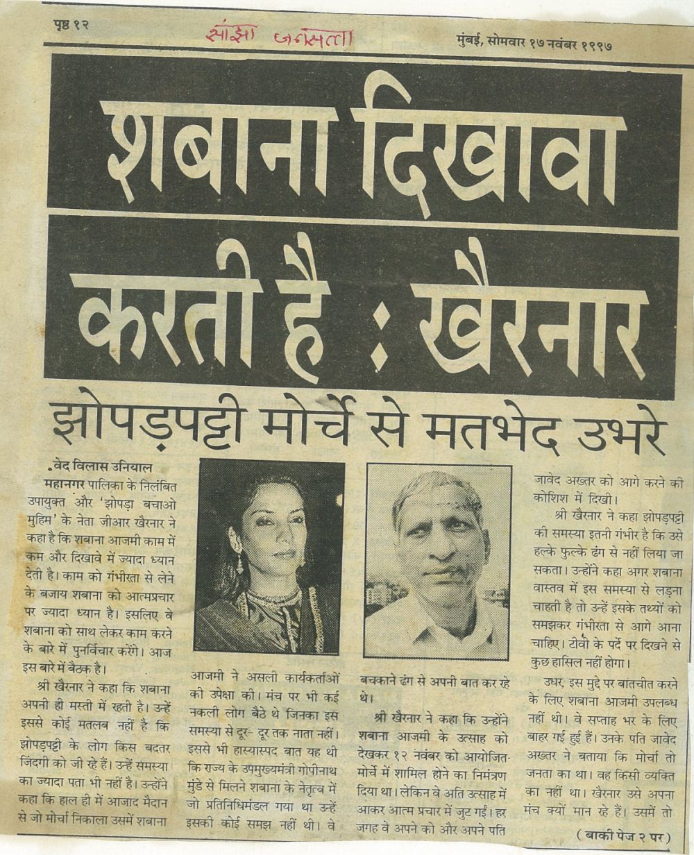 24th Dec – VP, Shabana lead slum dwellers – Indian Express
